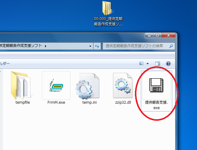 この中の『提供報告支援.exe』をダブルクリックするとソフトウェアが起動します。