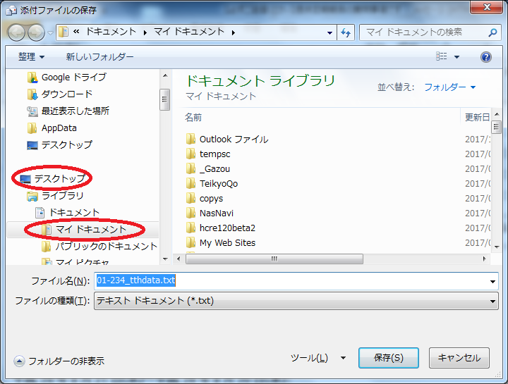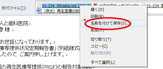 メールに添付しました『(受付番号)_tthdata.txt』を「ドラッグ&ドロップ」や「右クリック」で