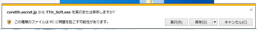 上記の様に「PCに問題を起こす可能性...」などのメッセージが出ますが、これは「実行ファイル」をダウンロードする
