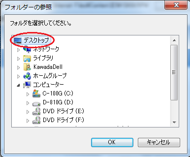 適当なフォルダ(ここでは「デスクトップ」)をクリックします。
