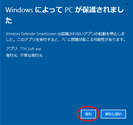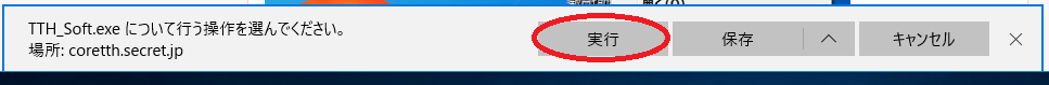 下記[Down Load!]からインストール用自己解凍ZIPファイル(TTH_Soft.exe)をクリックして「実行」します。
