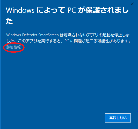 (Windowsの「セキュリティ設定」によっては起動時に警告がでますが、出現する警告画面((Windowsのバージョンによって異なる))の