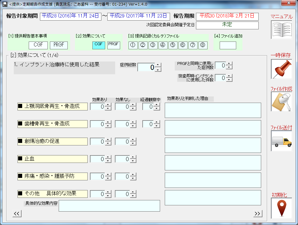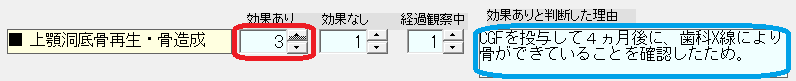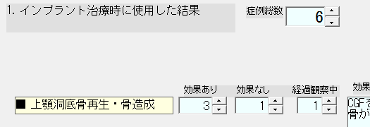 記入項目は「効果あり」「効果なし」(骨造成に関しては)「経過観察中」の件数についてご記入ください。