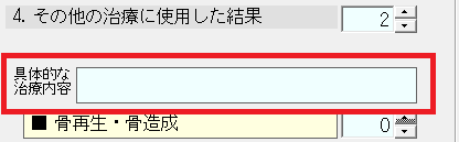 また、「4.その他治療に使用した結果」に関しましては件数を入力した場合は必ず「具体的な治療内容」をご記入下さい。