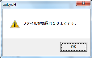 上記方法により登録できるファイル(フォルダ)数の最大は「10」です。10を超えると以下の表示が出、それ以上表示できません。