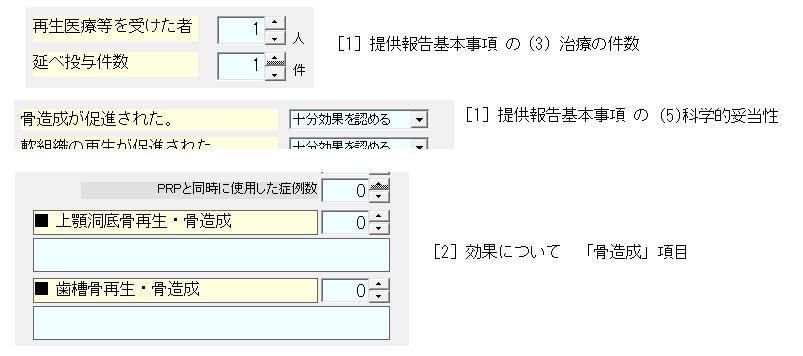 骨造成に関する『有効と認められる件数』がすべて『0件』の様な場合。