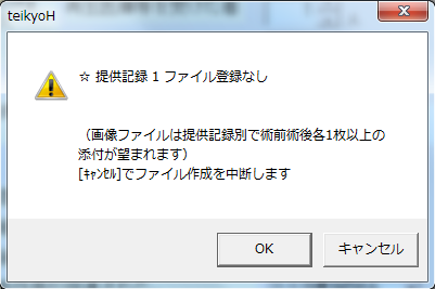 [3] 提供記録作成 で「画像ファイルの添付」が無い場合には以下の画面が表示されます。